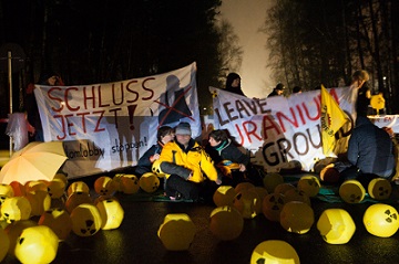 “Wir fordern die sofortige Stilllegung aller Anlagen, die zur atomaren Produktionskette gehören, denn es kann keine sicheren Atomanlagen geben.“ erläuterte ein Aktivist. Wer den „Atomausstieg“ will, muss ganz aus der Atomindustrie aussteigen. Dies bedeutet, weder Brennelemente in Lingen zu produzieren, noch Uran in Gronau anzureichern.