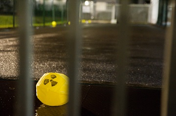 Wasserbällen wollten sie verdeutlichen, wie sich radioaktive Strahlung verteilt, überall und unkontrollierbar. Die Firma, die Brennelemente für AKWs in aller Welt produziert, beliefert auch die Pannenreaktoren in Doel, Fessenheim und Cattenom – dies war der Anlass der Aktion.