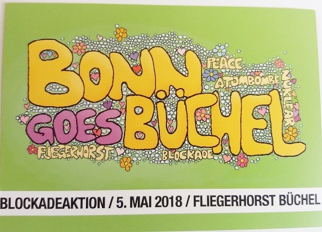 Am Samstag, 7. Juli, wollen Christinnen und Christen aus mehreren Landeskirchen der Evangelischen Kirche in Deutschland und aus der katholischen Friedensorganisation Pax Christi in Büchel/Eifel am dortigen Bundeswehr-Fliegerhorst ein Zeichen setzen für den Abzug und das Verbot von Atomwaffen. AntiAtomBonn unterstützt diese Initiative, da es sehr wichtig ist, den Widerstand gegen Atomwaffen auf mehr Schultern zu verteilen. Dafür sind Kirchengemeinden ein wichtiger Partner. Die Aktion soll die größte in diesem Jahr vor den Toren des Atomwaffenstandorts sein. Unser Ziel ist es, dass 500 Personen daran teilnehmen. Dafür ist es sehr wichtig, dass unser Bonner Bus voll wird!