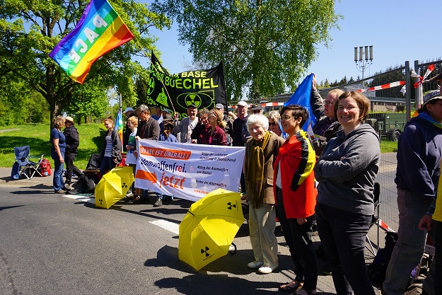 Mach mit! Wir werden am 5. Mai 2018 den Atomwaffenstandort Büchel blockieren (10-16h). Dort lagern 20 Atombomben, die jeweils die 13-fache Sprengkraft der Hiroshima-Bombe haben.
