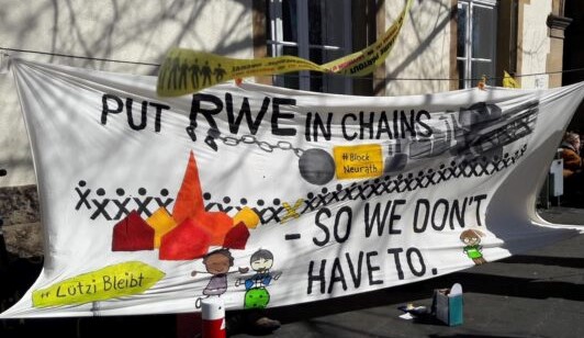 Mehr als 35.000 Menschen haben sich am 14.01. nach Lützerath auf den Weg gemacht, um zu zeigen, dass das Dorf erhalten und die Kohle im Boden bleiben muss. Trotzdem hat die Landesregierung Lützerath mit brachialer Gewalt räumen lassen, um die Profitinteressen des Klimakillers RWE durchzusetzen. Daher werden wir am Samstag, dem 18.03.23 mit einer Demo und einer Aktion den Widerstand in geballter Form an den Ort des RWE-Konzernsitzes in Essen tragen. RWE hat Lützerath räumen lassen – jetzt machen wir mit einer symbolischen Blockade aller RWE-Eingänge deutlich: Das “Weiter so” muss beendet werden – für eine klimagerechte Zukunft für alle Menschen auf diesem Planeten!